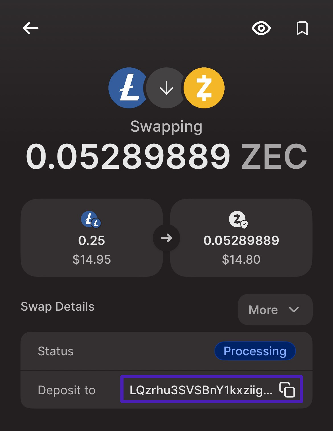 On the site's search box, paste the deposit address you received for the swap. This can be found in the transaction detail upon tapping on the swap's entry in your Zashi Activity list.