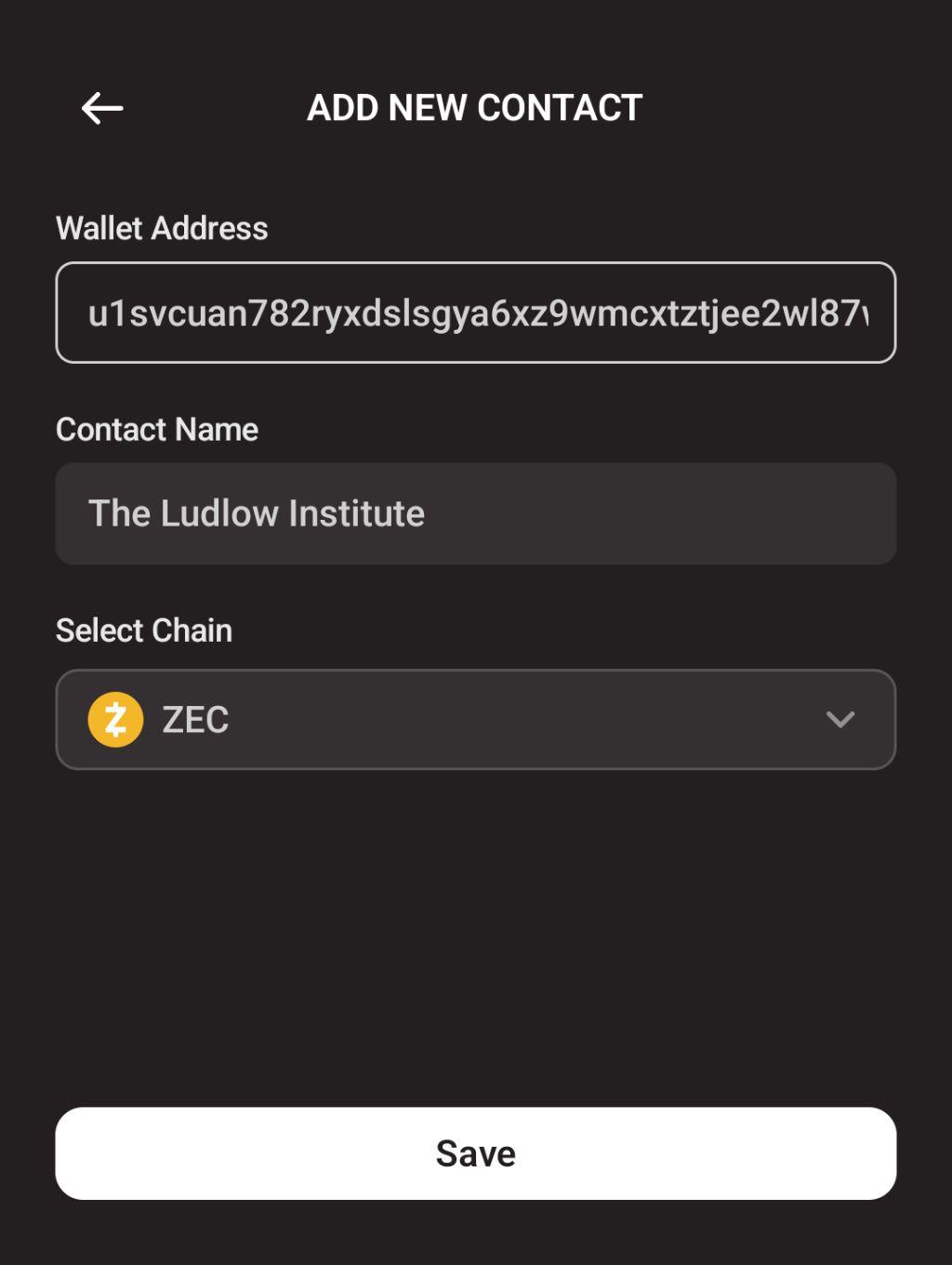 Once scanned or pasted, add a contact name and specify the chain (if not automatically detected).