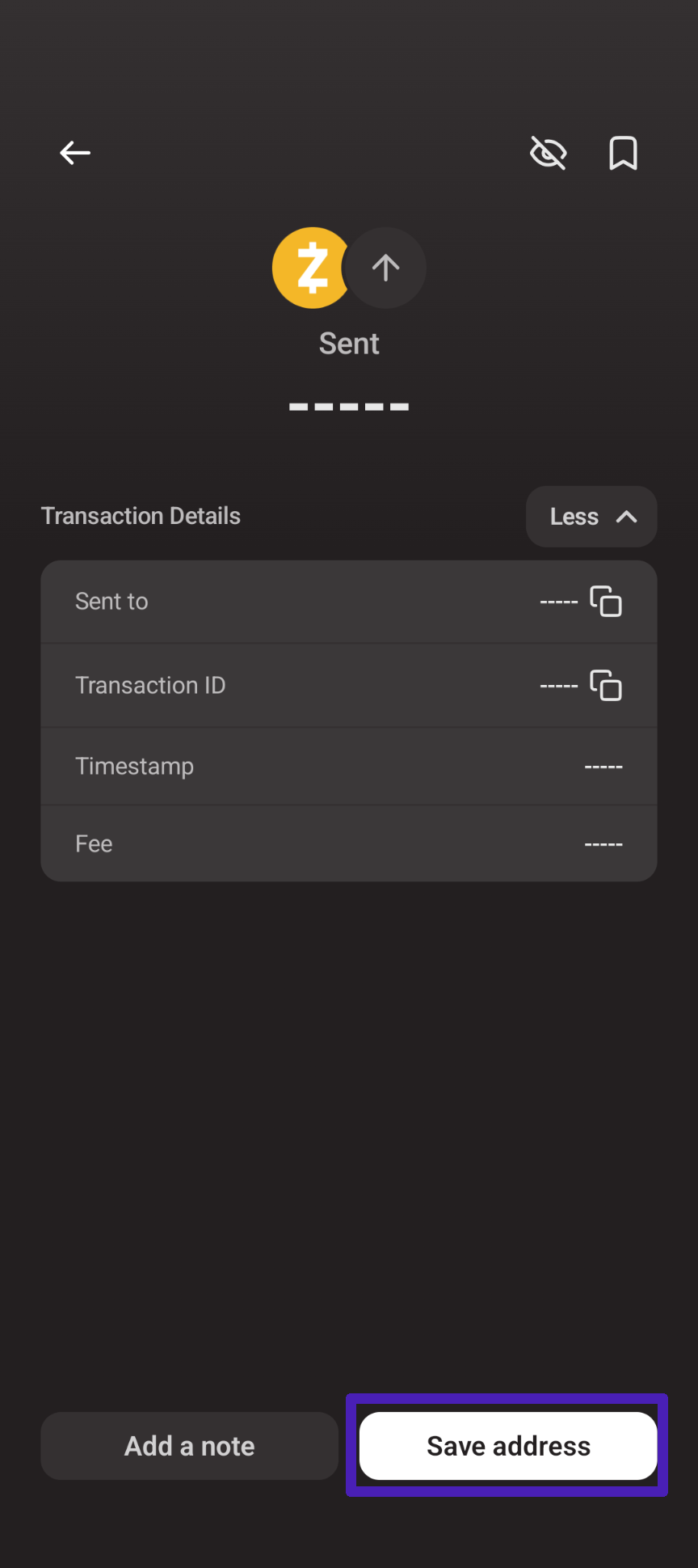 If you just sent a transaction to someone and would like to save their address, tap on the transaction in your Zashi Activity list, then tap 'Save address'.